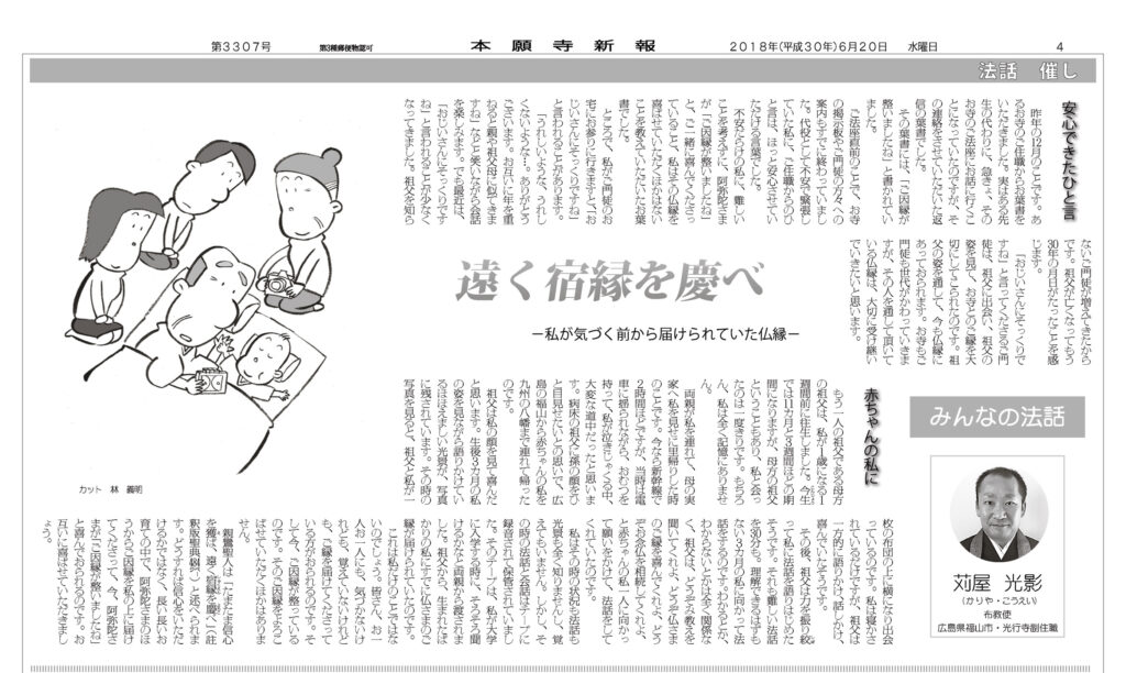 遠く宿縁を慶べ<第3307号 本願寺新報より>